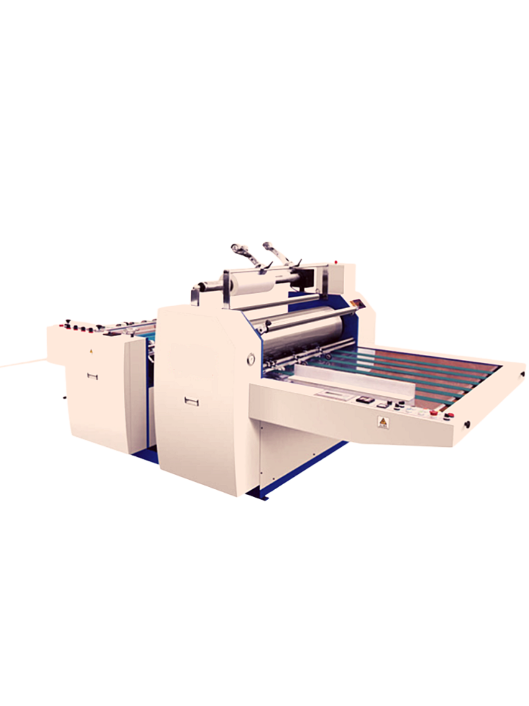 The electric and pneumatic devices are controlled by programmable control (PLC) system. And the operator can operate the machine easily on touch screen. Heating roll adopts built-in oil heating system that has excellent heat-retention property to provide precise and stable laminating temperature. This machine centralizes the features of compact structure, high automation, humanized operation design, and is an excellent choice for large and medium-size enterprises.